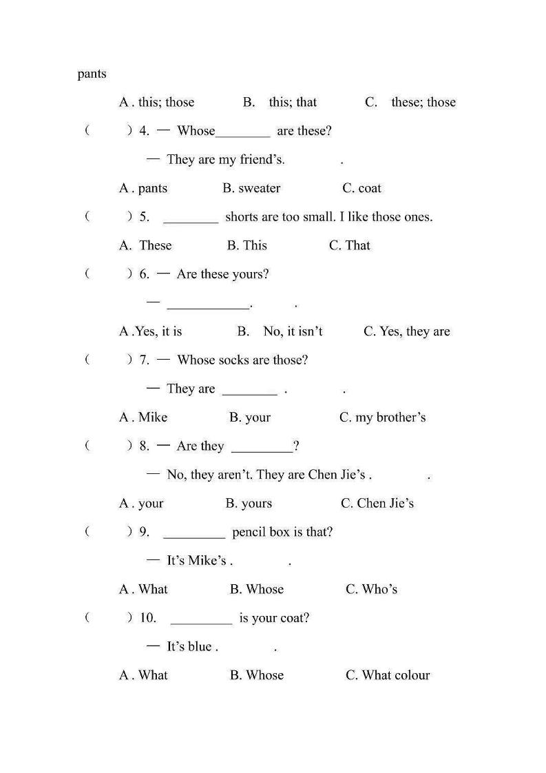 四年级下英语五六单元复习小测《PEP版》